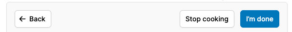 You can cancel cooking mode with the 'Stop cooking' button and when you're done with a recipe simply tap or click 'I'm Done'. You can back out of cooking mode at any time with the 'Back' button.