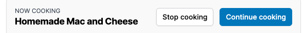 Exiting from cooking mode, with either 'Stop cooking' or 'I'm done' will return you to the app in its normal working mode and will remove the 'now cooking' window.